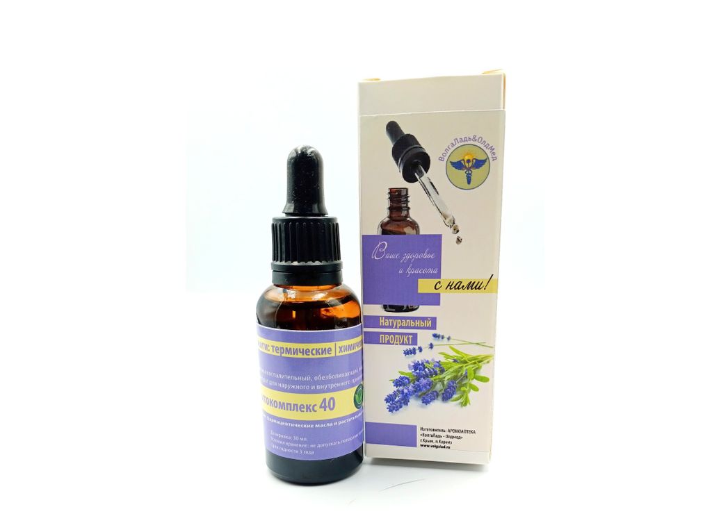 Изготовлен методом водно-паровой экстракции растений, собранных на почвах с содержанием кила (голубой глины).