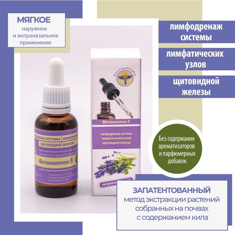 Изготовлен методом водно-паровой экстракции растений, собранных на почвах с содержанием кила (голубой глины).