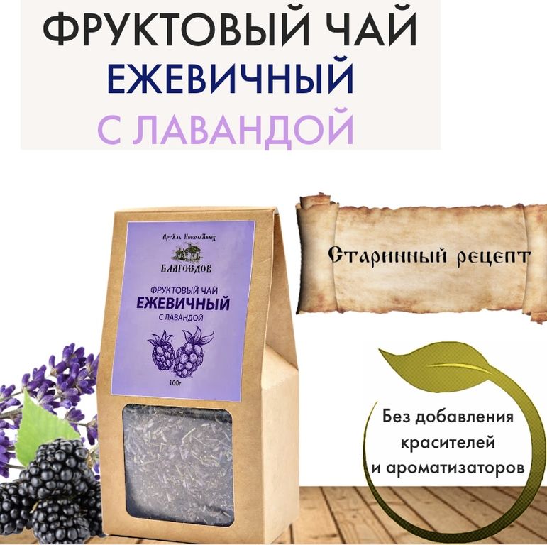 "Наш фруктовый чай — это напиток, приготовленный из смеси сушёных листьев ежевики и лаванды.