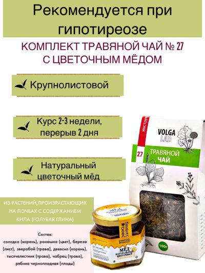 20% Добавить в избранное Убрать из избранного Артикул: чай27-70+м-цветочный-140 В наличии: 100 Артикул: чай27-70+м-цветочный-140 В наличии: 100 Травяной чай Волгаладь № 27 с медом цветочным, лечебный комплект, 70/140 г 1 090 ₽ В корзину В корзину Лечение гипотиреоза Лечение гипотиреоза Описание Характеристики Вопросы и комментарии 0 Описание СоставТРАВЯНОЙ ЧАЙ ВОЛГАЛАДЬ № 27, «ГИПОТИРЕОЗ (НИЗКАЯ ФУНКЦИЯ ЩИТОВИДНОЙ ЖЕЛЕЗЫ)» смотреть описание>>>МЕД НАТУРАЛЬНЫЙ ЦВЕТОЧНЫЙ, 140 Г смотреть описание>>> Характеристики Вид комплект Количество товаров в комплекте 2 шт Вопросы и комментарии 0 Добавить Поделиться