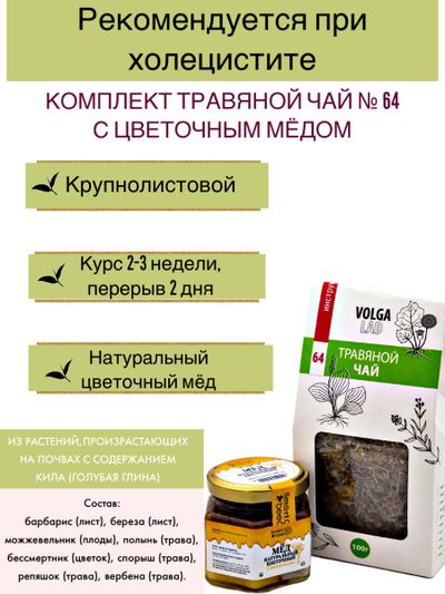 20% Добавить в избранное Убрать из избранного Артикул: чай64-70+м-цветочный-140 В наличии: 100 Артикул: чай64-70+м-цветочный-140 В наличии: 100 Травяной чай Волгаладь № 64 с медом цветочным, лечебный комплект, 70/140 г 1 090 ₽ В корзину В корзину Применяется при холецистите Применяется при холецистите Описание Характеристики Вопросы и комментарии 0 Описание СоставТРАВЯНОЙ ЧАЙ ВОЛГАЛАДЬ № 64, «ХОЛЕЦИСТИТ» смотреть описание>>>МЕД НАТУРАЛЬНЫЙ ЦВЕТОЧНЫЙ, 140 Г смотреть описание>>> Характеристики Вид комплект Количество товаров в комплекте 2 шт Вопросы и комментарии 0 Добавить Поделиться