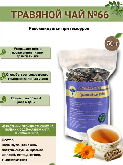 Фиточай при длительном применении прекращает геморроидальные кровотечения, уменьшает отек и воспаление в тканях прямой кишки, способствует сокращению ге-морроидальных узлов, улучшает венозное кровообращение.